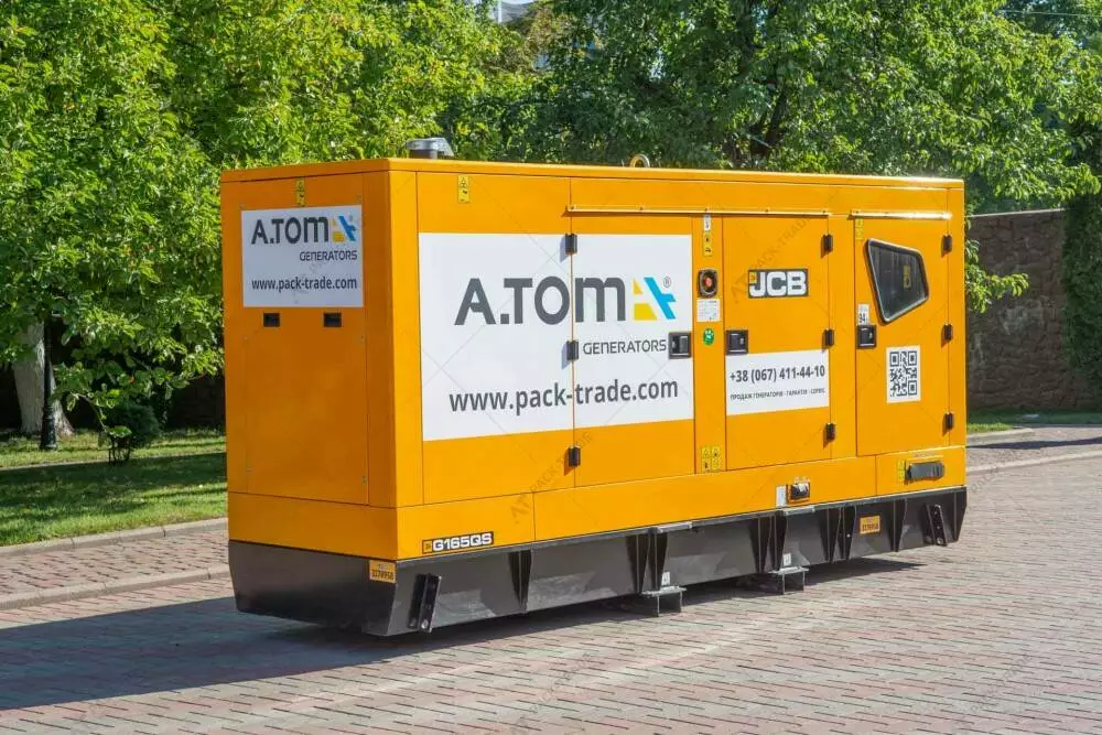 Дизельний генератор JCB G165QS 165 кВА. Максимальна потужність 132 - кВт. Витрати палива при 100% навантаженні 35 л/год. Об'єм паливного баку 360 л