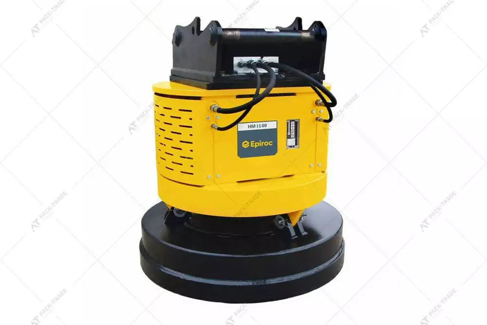 Гідравлічний магніт Epiroc HM1500 на екскаватор. Вага машини-носія — 12-30 т. Гідравлічні магніти серії HM чудово впораються зі збором цінного металевого брухту. У результаті місце виконання робіт стає чистішим і безпечнішим для іншого обладнання, а зібраний брухт може бути перероблений, що є джерелом додаткового прибутку.