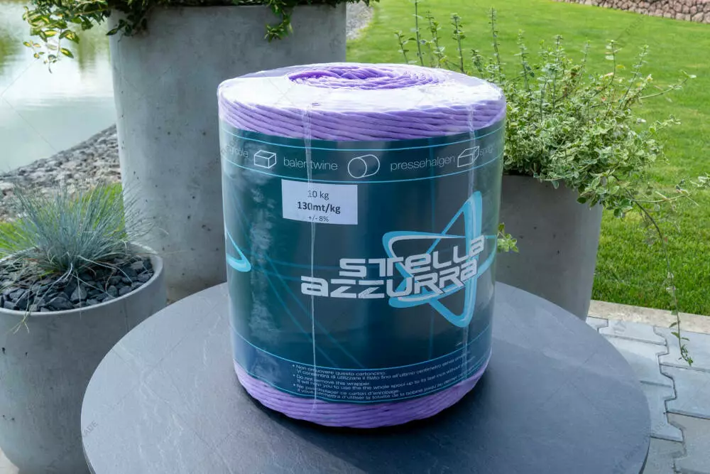 Шпагат поліпропіленовий Stella Azzurra 130/10 кг, фіолетовий — це високоякісний матеріал для аграріїв італійського виробництва, який широко використовується в сільському господарстві та інших галузях для в'язання тюків соломи, сіна, трави та інших матеріалів.