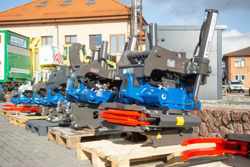 У вартість входить встановлення обладнання на території компанії PACK-TRADE. Поворотно похилий механізм для машин 6-10 т. Нахил до 40° у всіх напрямках. Обертається на 360° в обидва напрямки навколо своєї власної осі.