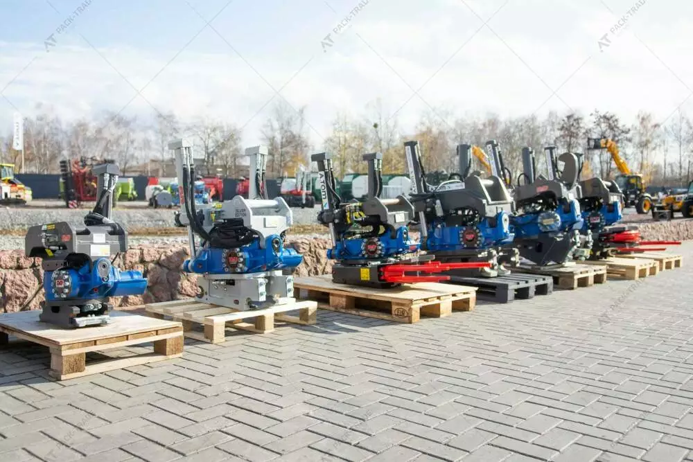У вартість входить встановлення обладнання на території компанії PACK-TRADE. Поворотно похилий механізм для машин 14-18 т. Нахил до 40° у всіх напрямках. Обертається на 360° в обидва напрямки навколо своєї власної осі.